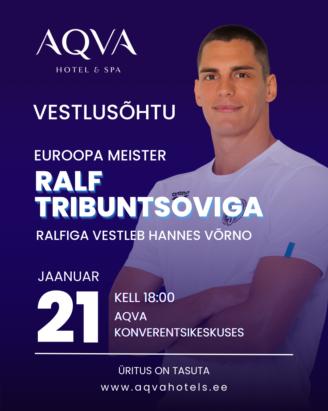 AQVA Hotel & Spa kutsub Sind vestlusõhtule koos Eesti tippujuja ja Eroopa meistri Ralf Tribuntsoviga, kus avame ausalt ja vahetult tippspordi telgitaguseid – treeninguid, kahtlusi, läbimurdeid ja sisemist jõudu.